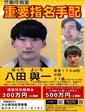 「重要指名手配」に指定されたのは、八田與一容疑者(27)です。