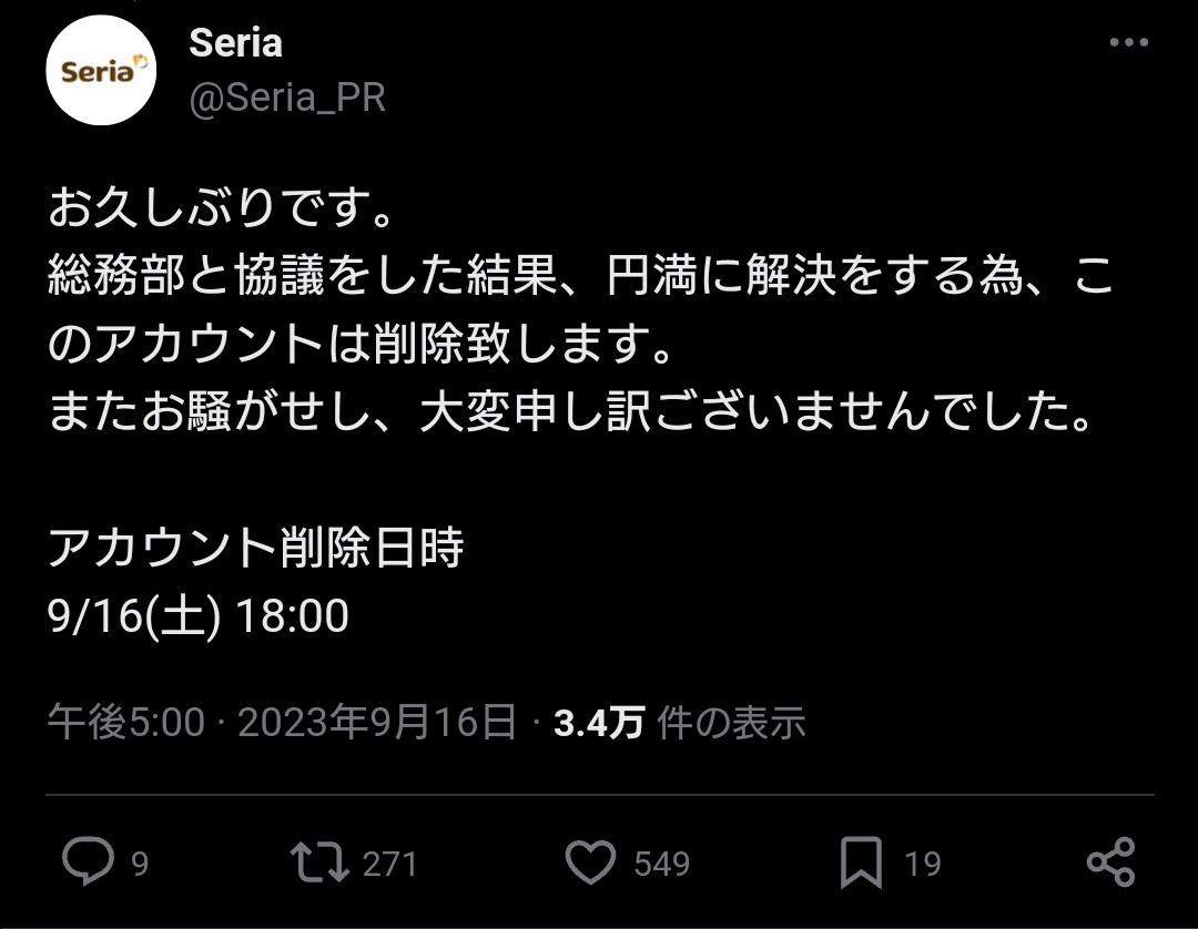 【悲報】seriaの公式X(旧Twitter)、非公式だった
