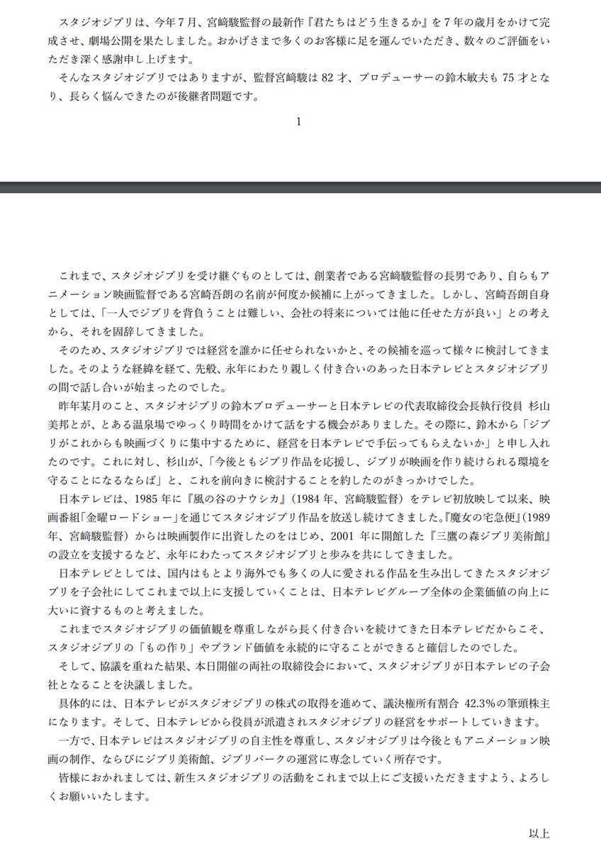 【速報】日テレHD、スタジオジブリを子会社化へhttps://t.co/QJK3IWfYem