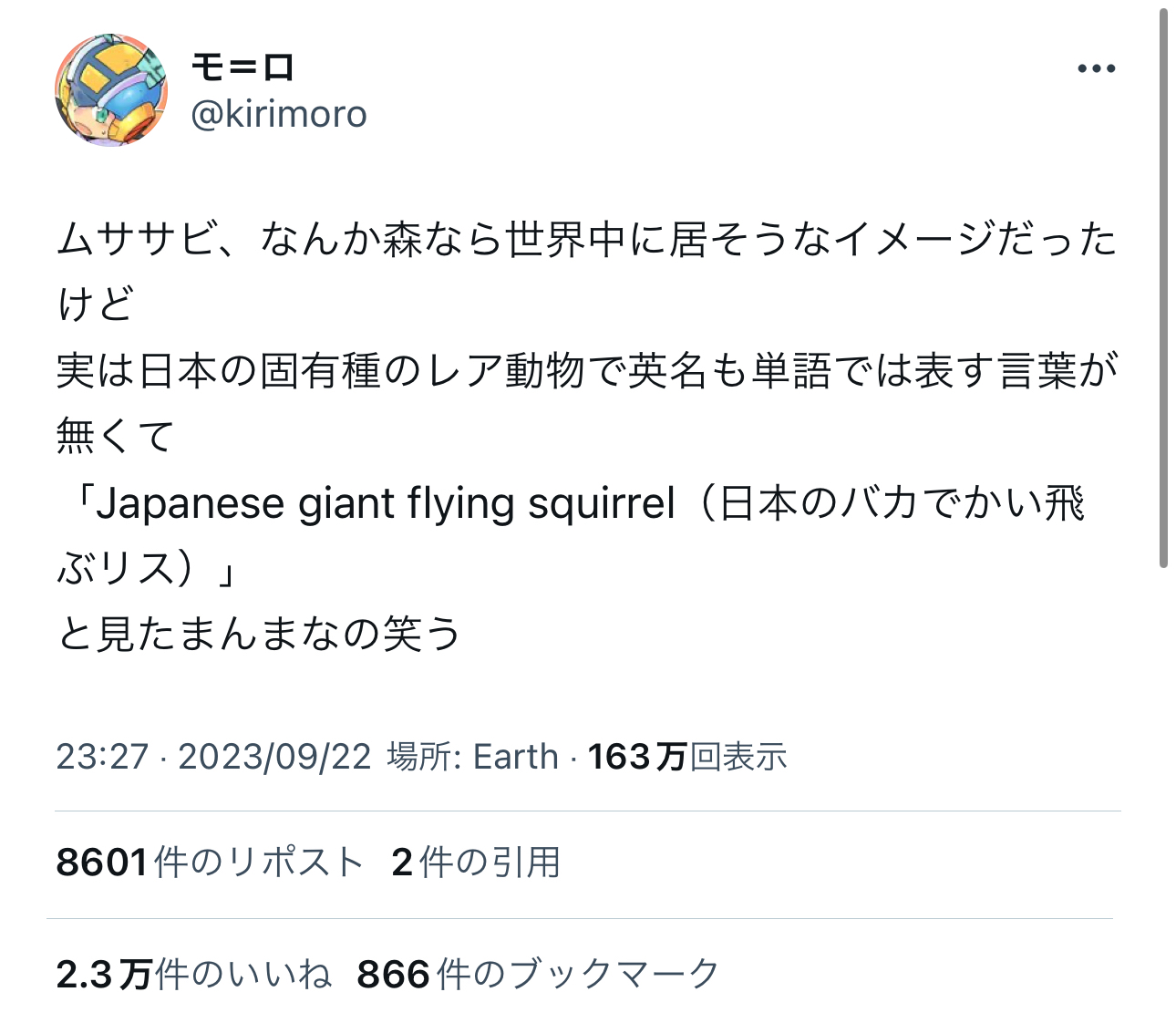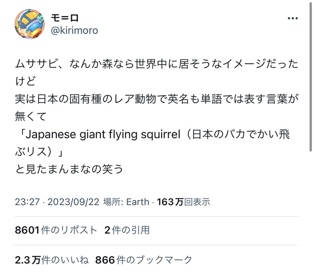 ムササビ、日本にしかいない固有種だと判明し誇らしいと話題に Twitter Facebook はてブ LINE コピー 2023.09.23 スポンサーリンク 1:2023/09/23(土) 15:30:35.76 ID:5q3NJsfM0こんなデカいリスが空飛んでるのは日本くらいらしい転載元スレッド:https://nova.5ch.net/test/read.cgi/livegalileo/1695450635/ 続きを読む