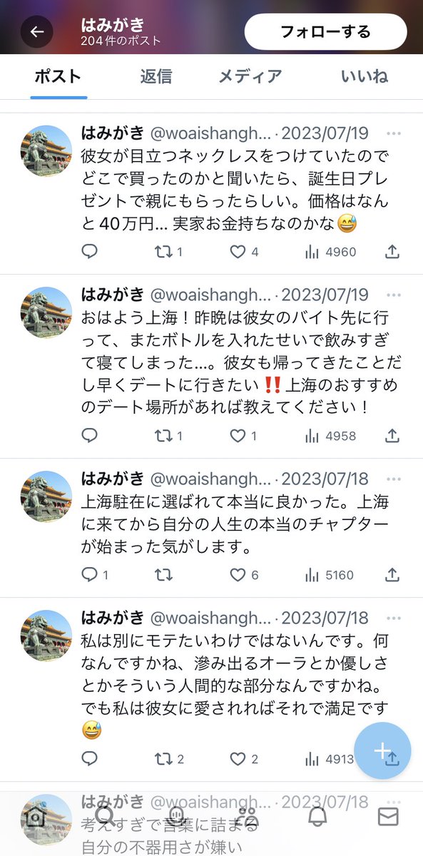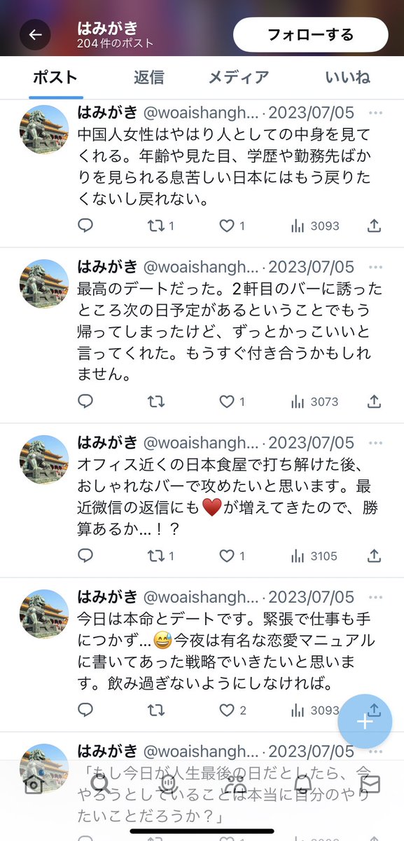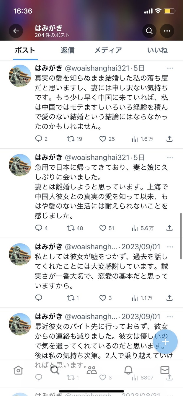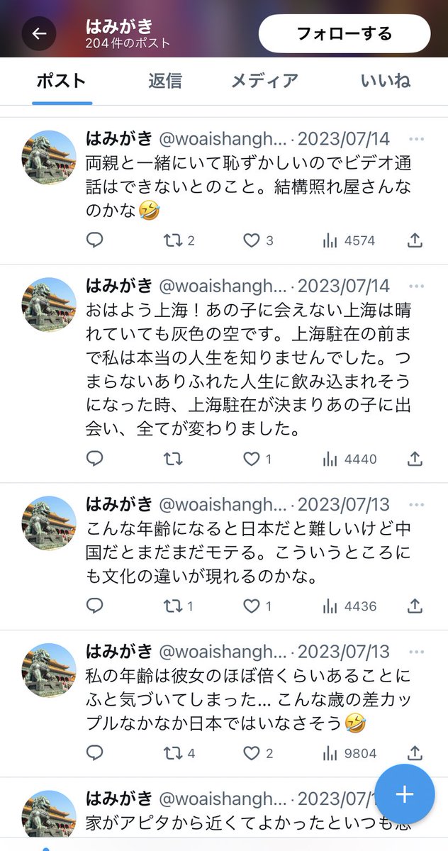 【朗報】日本人男性、中国で真実の愛に目覚めてしまう Twitter Facebook はてブ LINE コピー 2023.09.24 スポンサーリンク 1:2023/09/23(土) 20:05:45.50 ID:ospR8Gqh0転載元スレッド:https://nova.5ch.net/test/read.cgi/livegalileo/1695467145/ 続きを読む