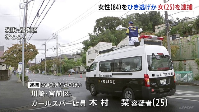 横浜市都筑区の路上で、23日、84歳の女性が車にひき逃げされ死亡した事件で、警察は25歳の女を逮捕しました。