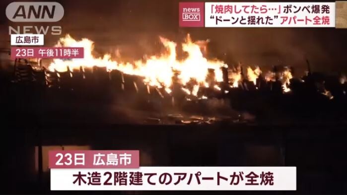 「焼肉してたら…」ボンベ爆発 “ドーンと揺れた”アパート全焼