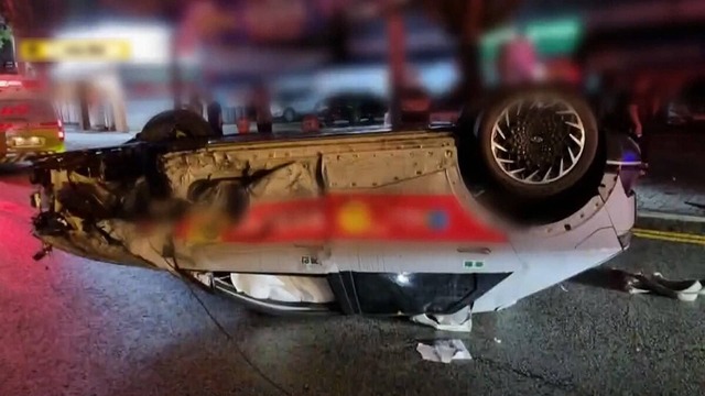 ぶつかった衝撃でタクシーはひっくり返ったまま、250メートルも飛ばされたという。