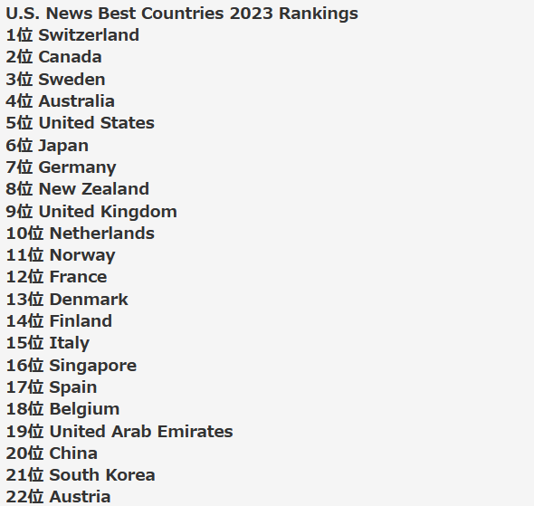 2023年版「世界最高の国」ランキングで日本がトップ10入り