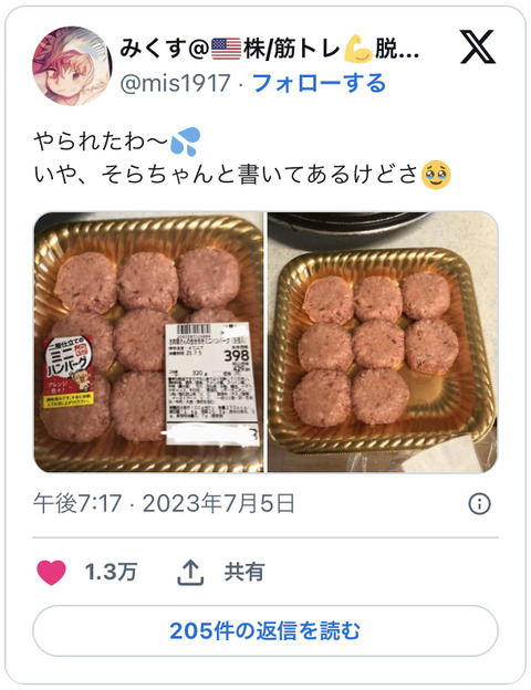 【悲報】9個入りハンバーグ、開封したら8個入りになってしまう… (※画像あり) Twitter Facebook はてブ LINE コピー 2023.10.02 スポンサーリンク 1:以下、5ちゃんねるからVIPがお送りします:2023/10/01(日) 17:04:33.958 ID:OQzs3sAD0 ヒェッ… 3:以下、5ちゃんねるからVIPがお送りします:2023/10/01(日) 17:07:54.101 ID:qJbjVkLx0 普通に書いてあるな 4:以下、5ちゃんねるからVIPがお送りします:2023/10/01(日) 17:08:19.144 ID:XlhAItDx0 詐欺はスレタイだろ 5:以下、5ちゃんねるからVIPがお送りします:2023/10/01(日) 17:08:29.234 ID:H3SRUDdH0 これは難癖 続きを読む