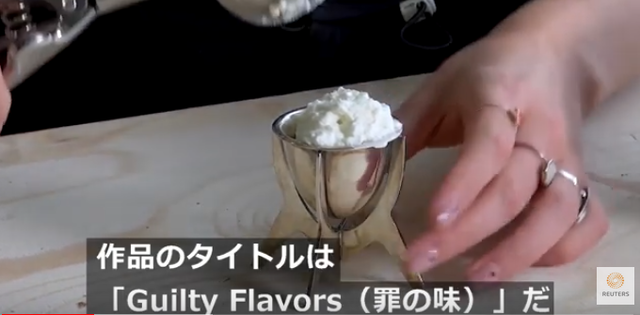 このアイスを人が食べられるようになるまでには、まだ大規模なテストを経なければならない。それまでの間、このアイスを作品として展示している。作品のタイトルは「Guilty Flavors(罪の味)」だ。