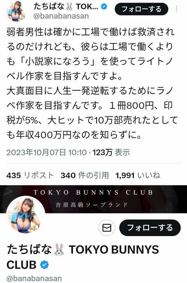 — たちばな🐰 TOKYO BUNNYS CLUB (@banabanasan) October 7, 2023