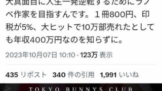 大真面目に人生一発逆転するためにラノベ作家を目指すんです。1冊800円、印税が5%、大ヒットで10万部売れたとしても年収400万円なのを知らずに。