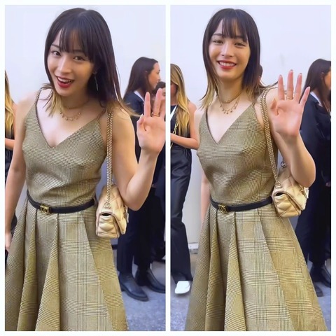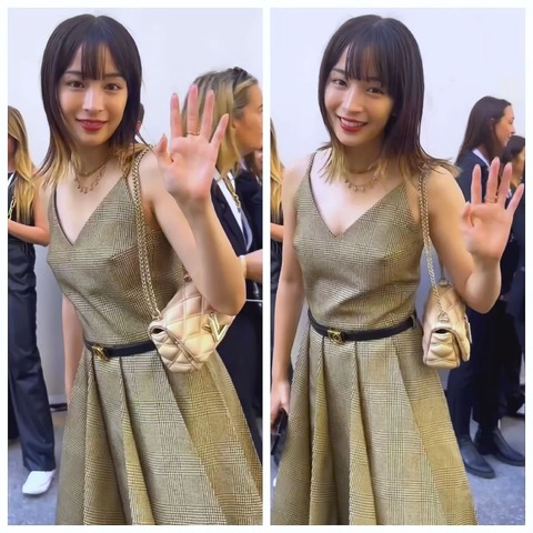 <広瀬すず>チェックのミニドレスで美脚すらり パリの「ヴィトン」ショーコーデを公開