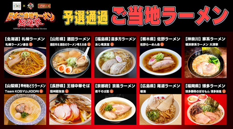 44のご当地ラーメンから予選を勝ち上がったファイナリスト10個のラーメンで優勝が決まった