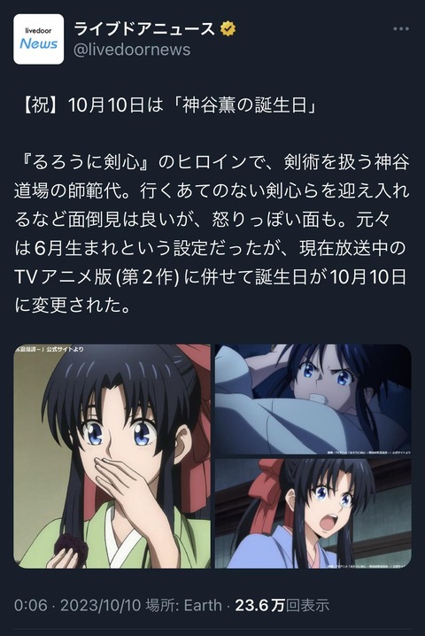 【悲報】るろ剣の薫どの、アニメの都合で誕生日を変えられてしまうwwwwwwwwwww Twitter Facebook はてブ LINE コピー 2023.10.10 スポンサーリンク 1:以下、?ちゃんねるからVIPがお送りします:2023/10/10(火) 08:25:22.445 なんでそんな事するんですか 2:以下、?ちゃんねるからVIPがお送りします:2023/10/10(火) 08:26:38.363 原作厨的にはどうなん? 15:以下、?ちゃんねるからVIPがお送りします:2023/10/10(火) 08:35:55.754 >>2 原作厨だけど誕生日が話に絡んだことないし別にいいかなって 3:以下、?ちゃんねるからVIPがお送りします:2023/10/10(火) 08:26:52.211 ロリコン犯罪者なんだからしょうがないだろ 続きを読む