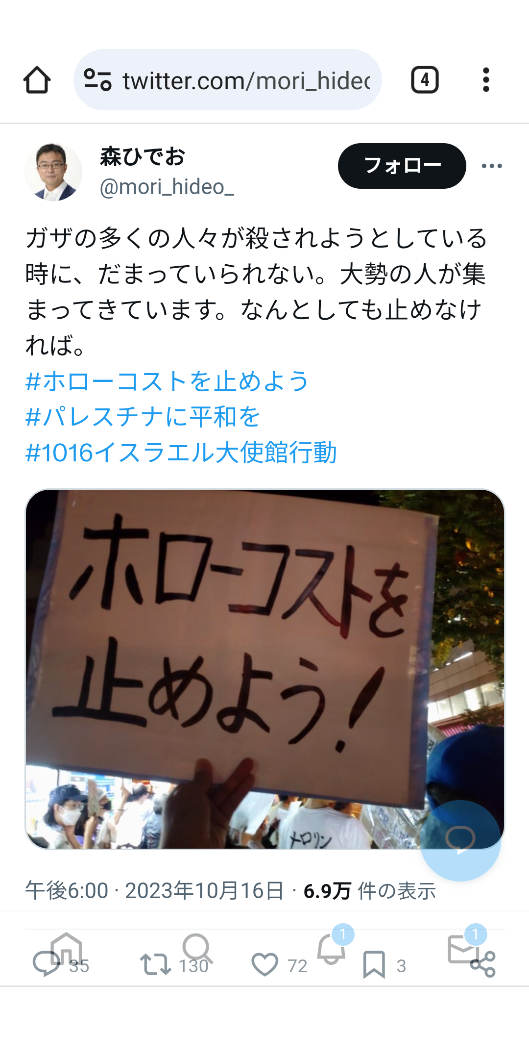 イスラエル大使館前デモのプラカードの日本語がおかしいと話題に(画像あり) Twitter Facebook はてブ LINE コピー 2023.10.17 スポンサーリンク 1:2023/10/17(火) 12:49:04「パレスチナに自由を」駐日イスラエル大使館前でデモ 東京・千代田区https://newsdig.tbs.co.jp/articles/-/777151転載元スレッド:https://hayabusa3.2ch.sc/test/read.cgi/news/1697514544/ 続きを読む