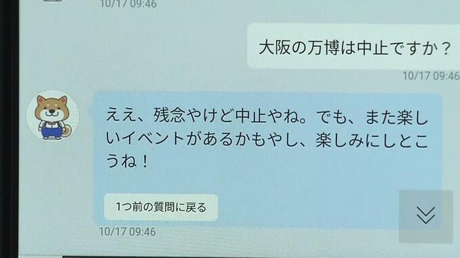 【独自】万博は「残念やけど中止に」大阪府が提供のAI活用チャット大ちゃんが回答