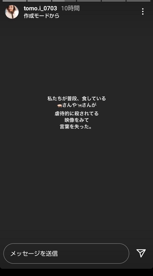 元AKB48で歌手の板野友美が15日までに自身のSNSを更新。肉を食べない「ミートフリーデーを作ることにします」と明かし、思いをつづった。