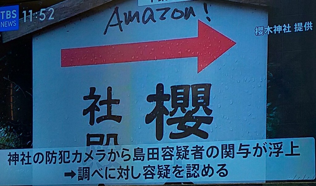 神社の「Amazon!」落書き、自称無職の男を逮捕…宮司「コロナで人の心もすさんでいる」