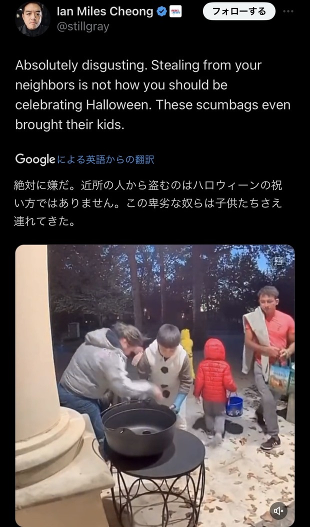 【動画】アメリカ人の民度、最低だった…ハロウィンで用意した家の前のお菓子大人たちが全部持ち去る