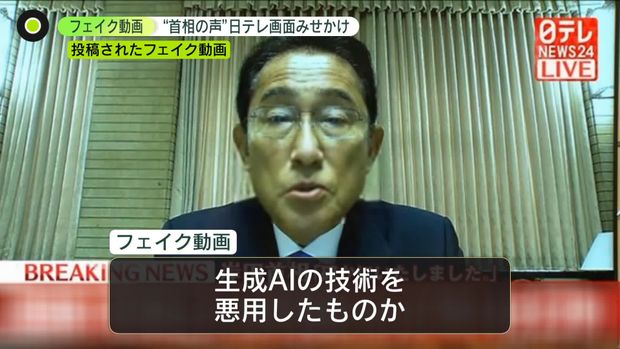 日本テレビのニュース番組の画面に見せかけた上で岸田首相の声を悪用した動画がSNSで拡散されています。日本テレビは「放送を悪用されたことは到底許すことはできない」とコメントしています。