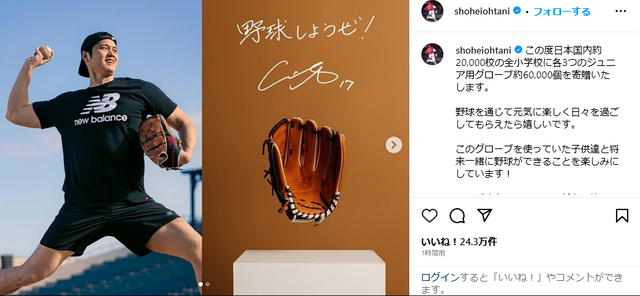 この度日本国内約20,000校の全小学校に各3つのジュニア用グローブ約60,000個を寄贈いたします。