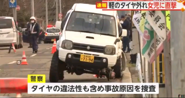 北海道・札幌市で14日午後、走行中の軽乗用車のタイヤが外れ、近くを歩いていた女の子に直撃した。 女の子は、意識不明の重体。