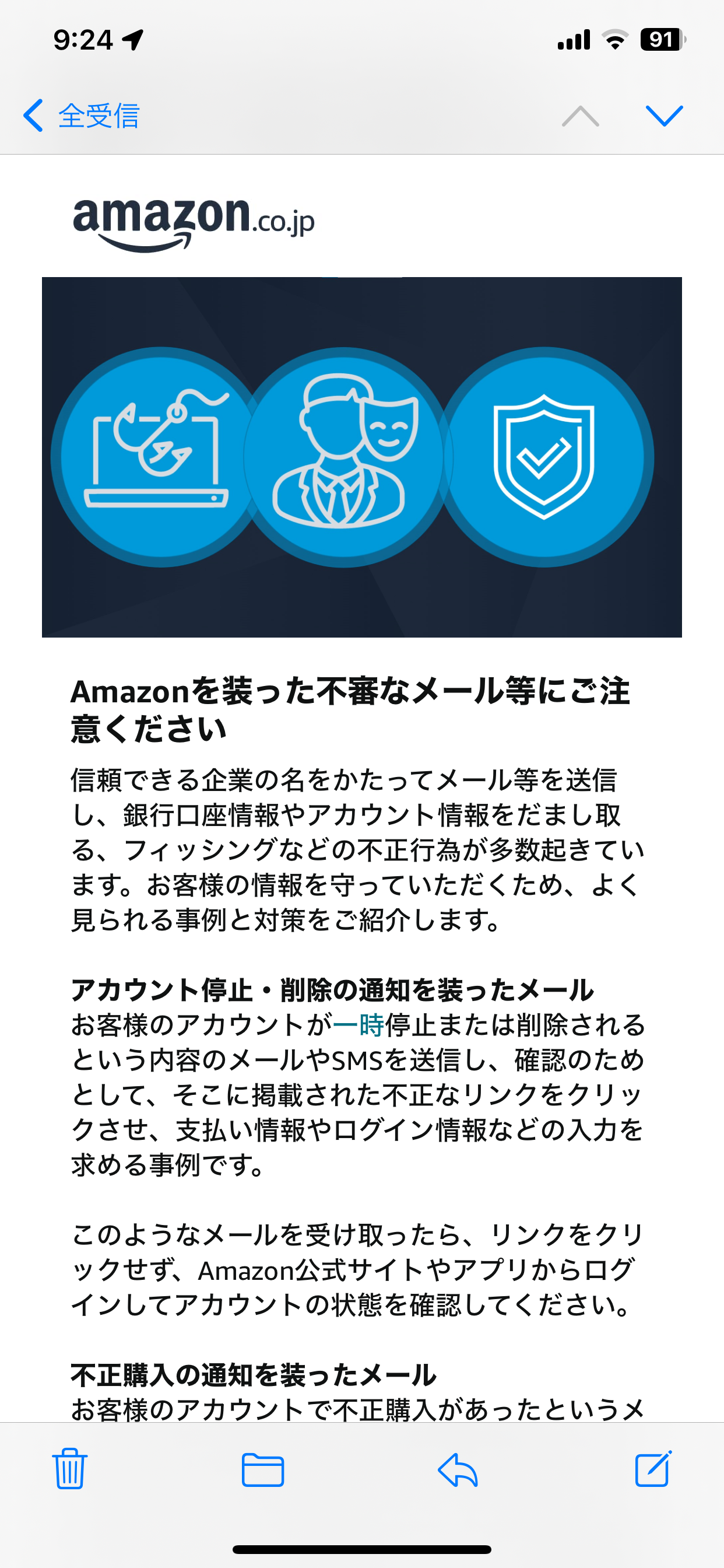 【朗報】Amazon、ついにAmazonを装った不審なメール等に注意するよう呼びかけを始める Twitter Facebook はてブ LINE コピー 2023.11.14 スポンサーリンク 1: 名無しさん@おーぷん 23/11/14(火) 10:02:30 ID:lWhr 2: 名無しさん@おーぷん 23/11/14(火) 10:03:30 ID:YAuz やっとか 4: 名無しさん@おーぷん 23/11/14(火) 10:04:21 ID:lWhr なおワイの感覚では最近減ってる 続きを読む