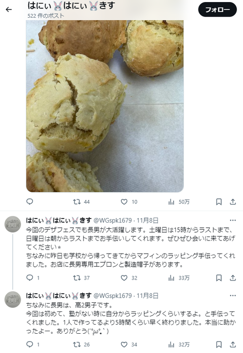 その日高2の長男がお店を手伝ってくれたことを嬉しそうに報告する店主