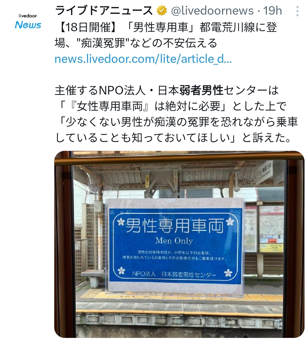 【悲報】男性専用車両、爆誕WWWWWWWWWWWWWWWWWWWWWWWWWWWWWWWWWWWWWWW