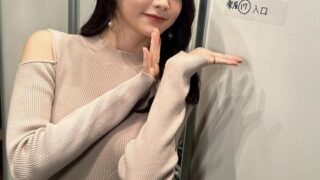 「佐久間&三四郎&森香澄のテレ東60祭!ミュージックフェス裏配信」に出演した際の衣装を公開。ベージュのニットは肩だけが穴が開いたように露出した色香が強めのデザイン。色も相まって、なまめかしさが際立った。