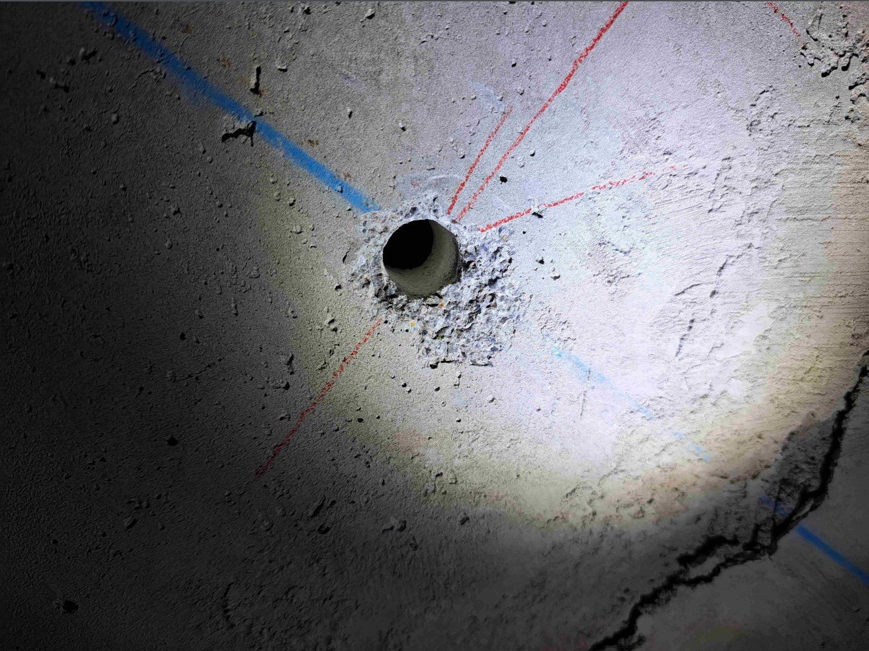 当時作業員が設置をしようと、アンカー用の穴をあけたところ、コンクリートを貫通して内部に空洞があることがわかったということです。