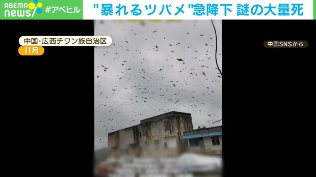 中国・広西チワン族自治区で11月、ツバメの大群があちらこちらへ、まるで暴れるように飛びまわる奇妙な光景が捉えられた。