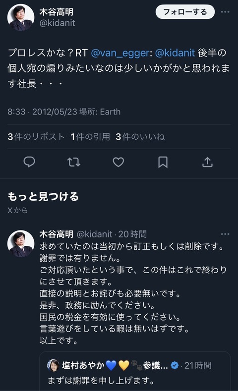 木谷がフォローしてる日本保守党の有本香もプロレス言いまくって臭
