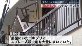 ゴキブリに殺虫剤→1分後に部屋爆発 マンションで男性1人搬送