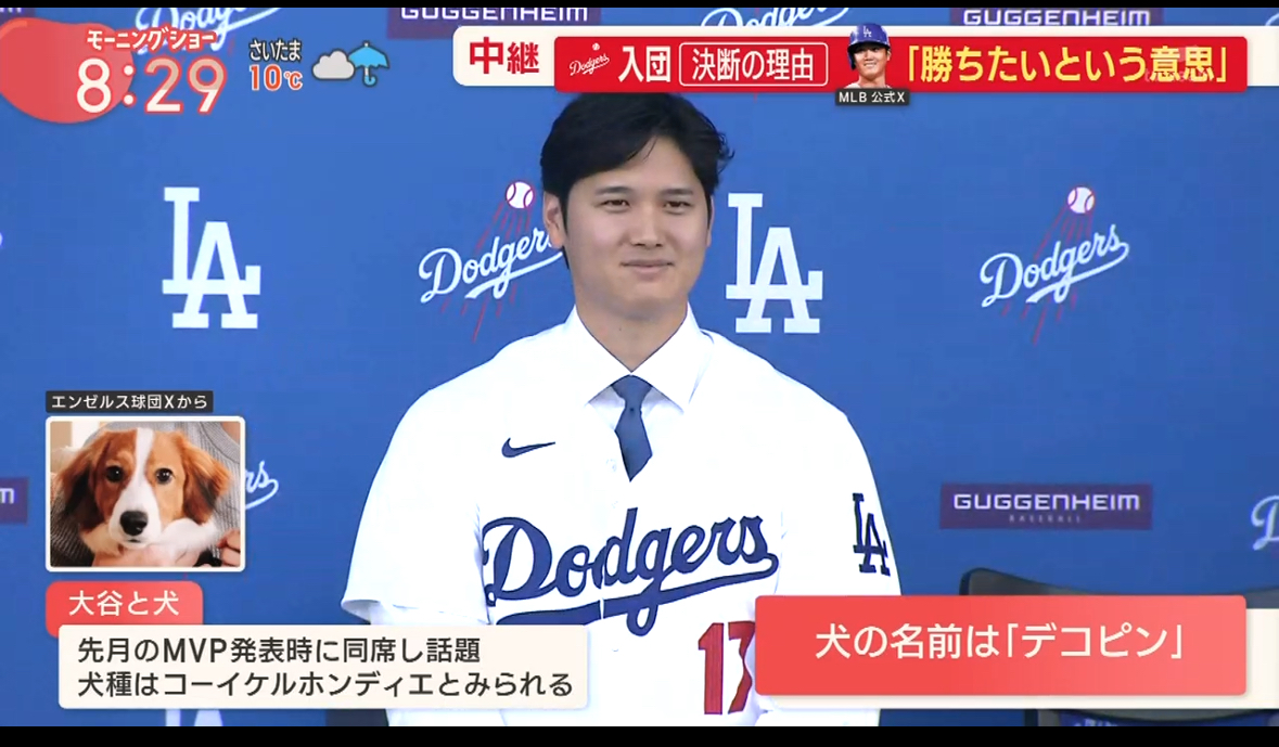【話題】大谷翔平が入団会見、愛犬の名前は「デコピン」 瞬く間にトレンド1位にhttps://t.co/1FhavX3DKv