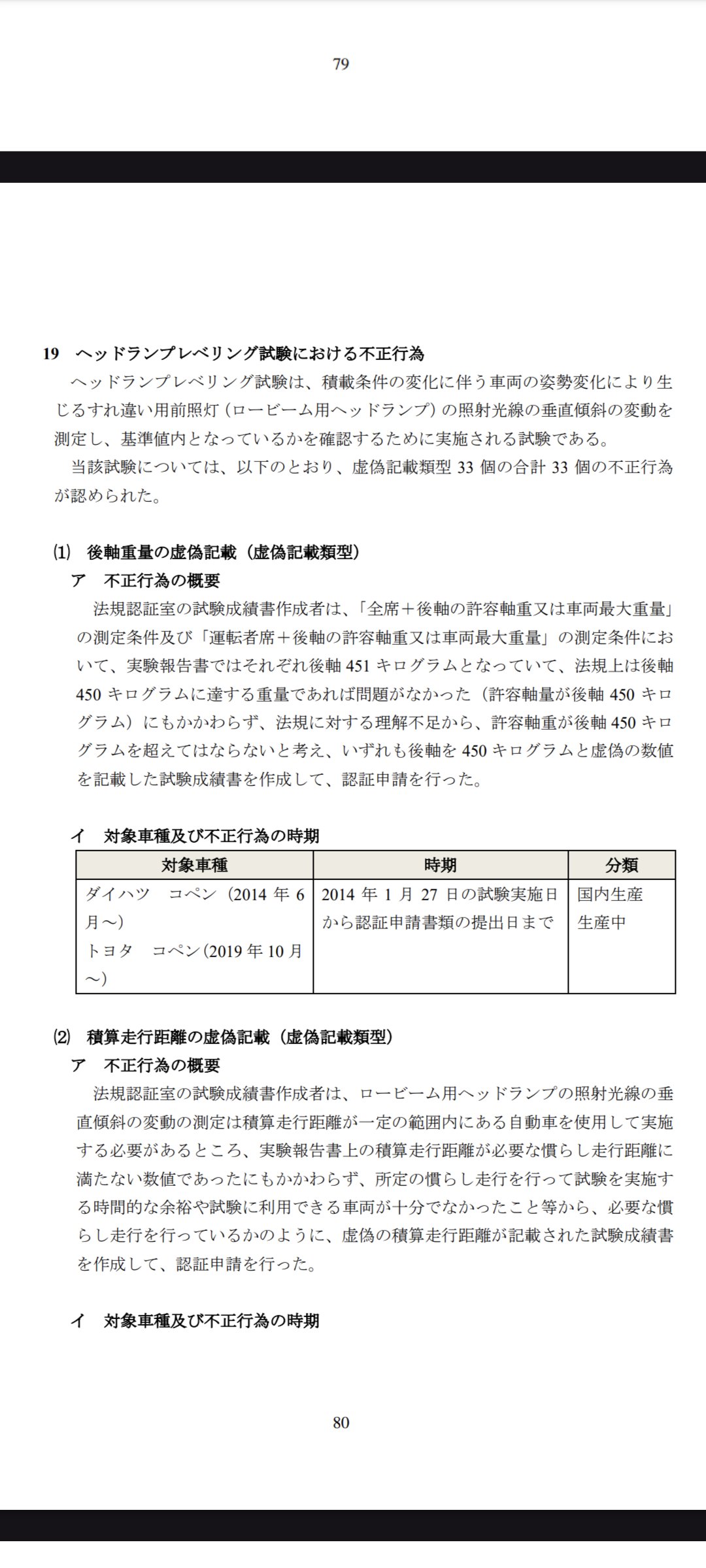 ①ヘッドライト光軸の虚偽