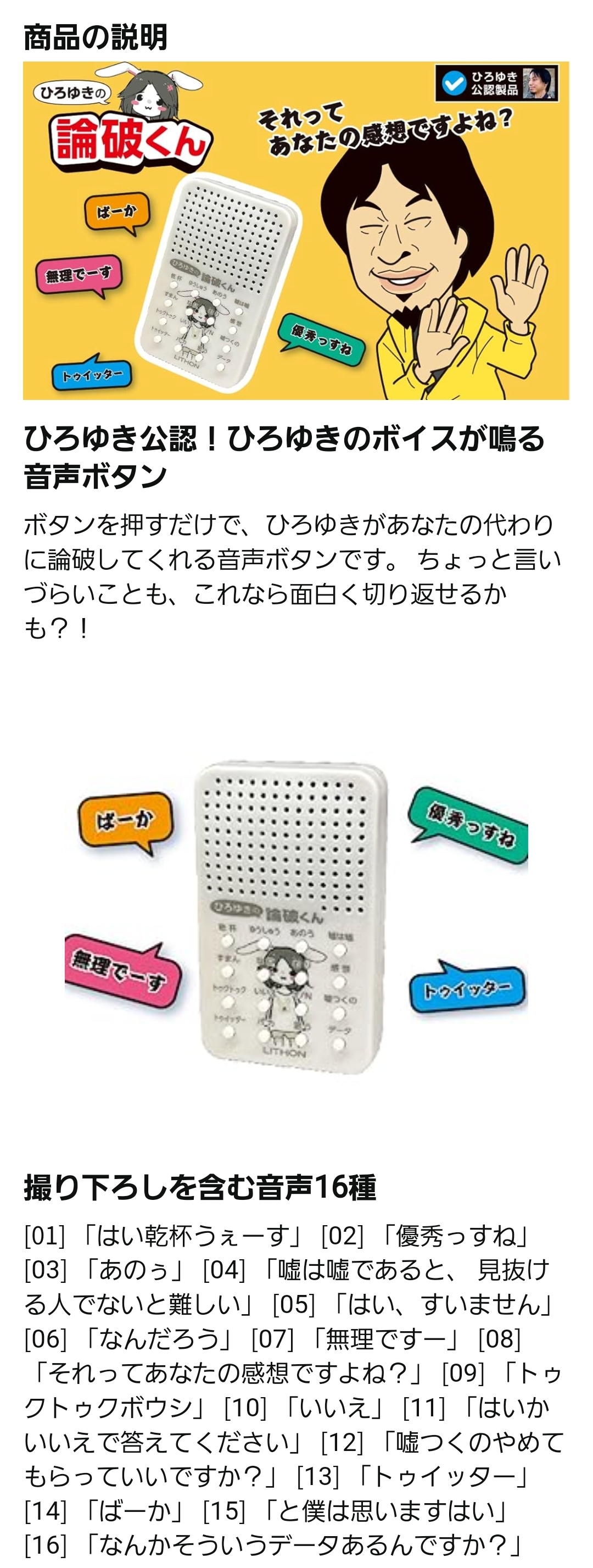 ドンキ「ひろゆきのグッズ仕入れたぞ!売れるやろなぁ…」 Twitter Facebook はてブ LINE コピー 2023.12.24 スポンサーリンク 1: それでも動く名無し 2023/12/23(土) 22:34:33.23 ID:RfZUOyHMd 訳アリ大放出 何故なのか 12: それでも動く名無し 2023/12/23(土) 22:47:26.57 ID:RfZUOyHMd クラスのおもんないやつが買っていそう 9: それでも動く名無し 2023/12/23(土) 22:44:15.79 ID:ZZo4UD850 これ割とガチで誰が買うの? 続きを読む