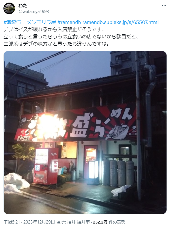 — 激盛ら~めん ゴリラ屋 (@hakosukaaa) December 29, 2023