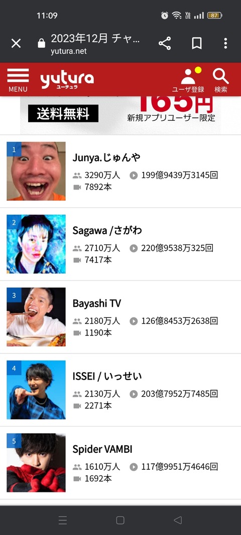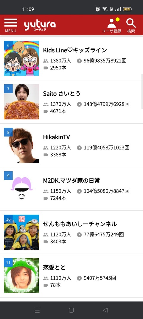 【画像】日本人トップYouTuber、10傑がこちらw w w w w w w w w w w w w w w w w w Twitter Facebook はてブ LINE コピー 2024.01.02 スポンサーリンク 1:それでも動く名無し:2024/01/01(月) 11:19:57.12 ID:4XITqZdl0.net 2:それでも動く名無し:2024/01/01(月) 11:20:22.71 ヒカキン以外知らない定期 6:それでも動く名無し:2024/01/01(月) 11:21:08.75 >>2 それはあまりにも社会に関心が無さすぎ 124:それでも動く名無し:2024/01/01(月) 11:51:36.85 >>6 ずいぶん特殊な社会に住んでるんやな 続きを読む