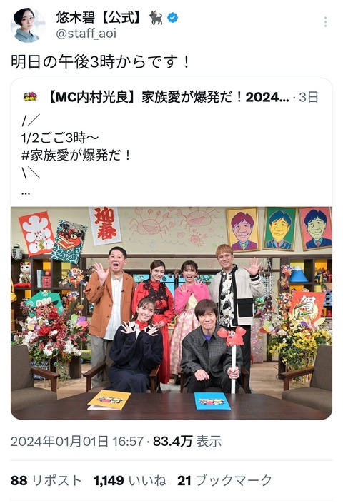 【画像】声優の悠木碧さん、ブチギレた陰に陳謝wwwwwwwwww Twitter Facebook はてブ LINE コピー 2024.01.02 スポンサーリンク 1:以下、?ちゃんねるからVIPがお送りします:2024/01/01(月) 17:55:04.423 ID:SOLtO38Id 4:以下、?ちゃんねるからVIPがお送りします:2024/01/01(月) 17:56:28.666 ID:VlMlEaQVd 素直にかわいそう 田舎に帰省でもしてたんか? 5:以下、?ちゃんねるからVIPがお送りします:2024/01/01(月) 17:56:30.330 ID:tMe15g7f0 かわいい 7:以下、?ちゃんねるからVIPがお送りします:2024/01/01(月) 17:56:42.243 ID:z8fLUqOj0 バカッター不謹慎マン暇すぎだろ 続きを読む