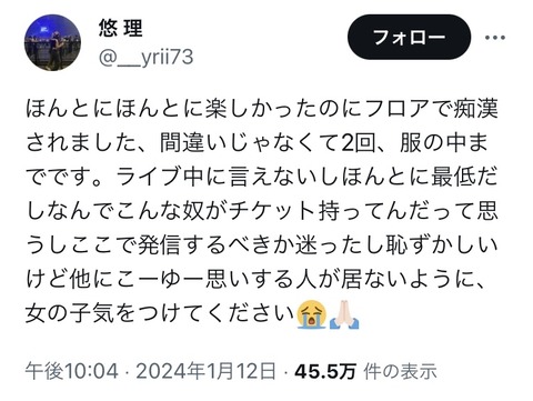 【悲報】JKさん、ヤバTのライブに行くも無事痴漢されてしまうwwmwwmww Twitter Facebook はてブ LINE コピー 2024.01.13 スポンサーリンク 1:それでも動く名無し:2024/01/13(土) 12:58:20.94 ID:WPH+89Rz0 かわいそうに 2:それでも動く名無し:2024/01/13(土) 12:59:22.36 ID:WPH+89Rz0 ちなご尊顔 続きを読む