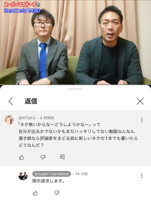 【朗報】スーマラ武智、酷すぎる誹謗中傷を食らい開示請求を宣言wwwwwwww Twitter Facebook はてブ LINE コピー 2024.01.14 スポンサーリンク 1:それでも動く名無し:2024/01/14(日) 00:32:49.13 ID:9Cd5b1KU0 4:それでも動く名無し:2024/01/14(日) 00:34:06.58 ID:K32fMGHW0 沸点低すぎ 6:それでも動く名無し:2024/01/14(日) 00:34:52.81 ID:9Cd5b1KU0 >>4 あーあ、これ見つかったら開示請求やろな 続きを読む