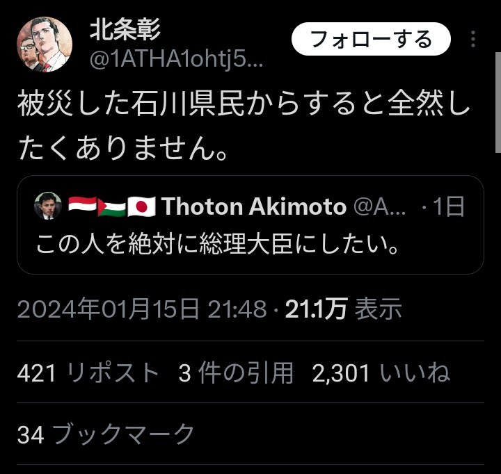 【炎上】 れいわ新選組の支持者 「山本太郎を総理大臣にしたくない方は瓦礫の下でお過ごし下さい Twitter Facebook はてブ LINE コピー 2024.01.16 スポンサーリンク 1:2024/01/16(火) 15:51:27.02 ID:mo44Oevg0.net BE:593349633-PLT(15000)石川県民に対して転載元スレッド:https://hayabusa3.2ch.sc/test/read.cgi/news/1705387887/ 続きを読む