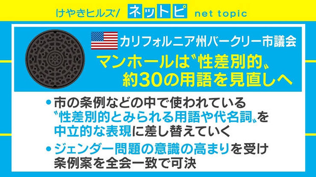 正義の女さん「キェエエエーーー!!!!マンホールは女性差別!!ジェンダー配慮で早急に名称の変更を!!」 Twitter Facebook はてブ LINE コピー 2024.01.21 スポンサーリンク 1 : 以下、?ちゃんねるからVIPがお送りします :2024/01/21(日) 11:42:28.733 ID:A8n6oJila.net転載元スレッド:https://viper.2ch.sc/test/read.cgi/news4vip/1705804948/ 続きを読む