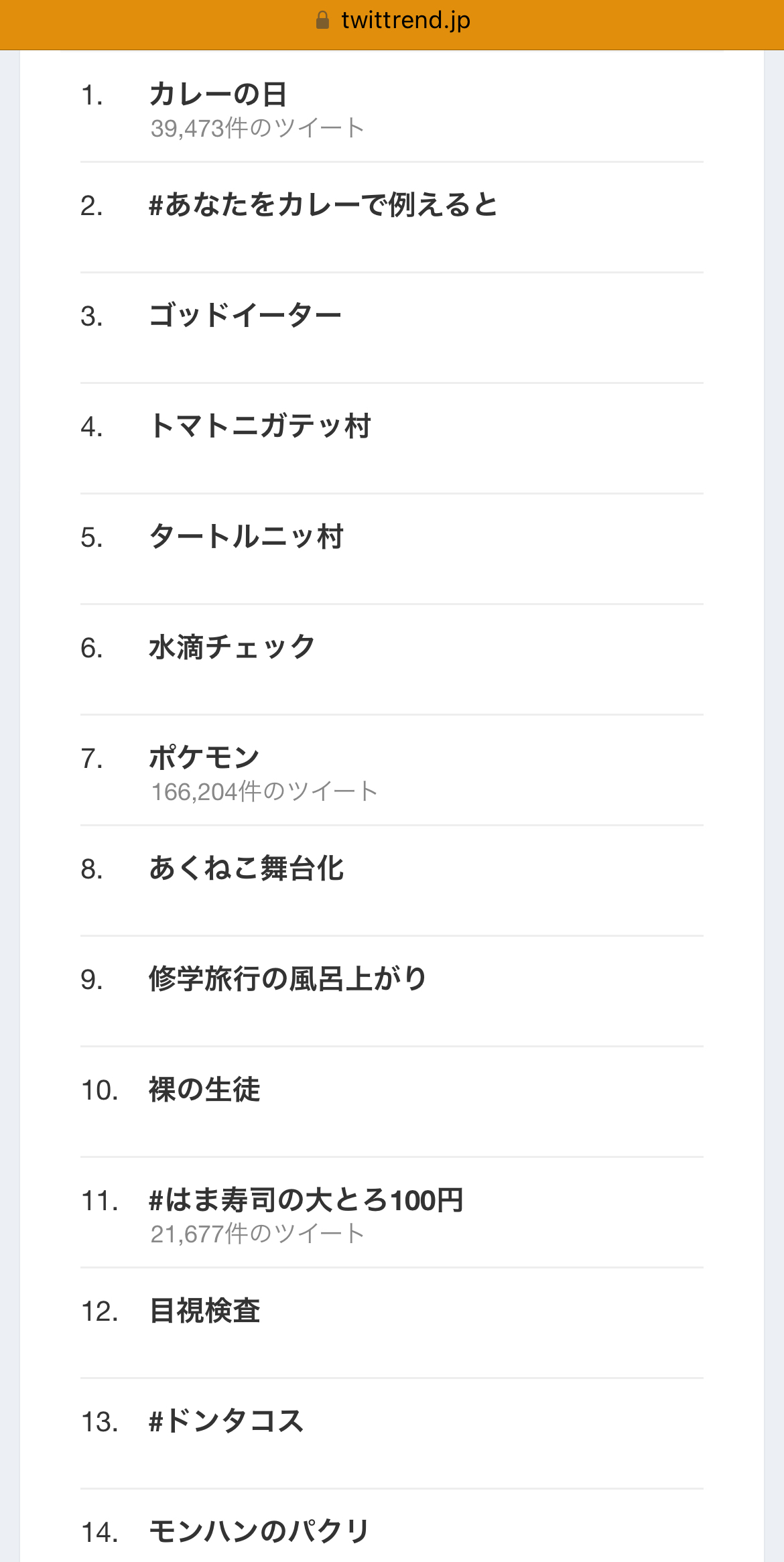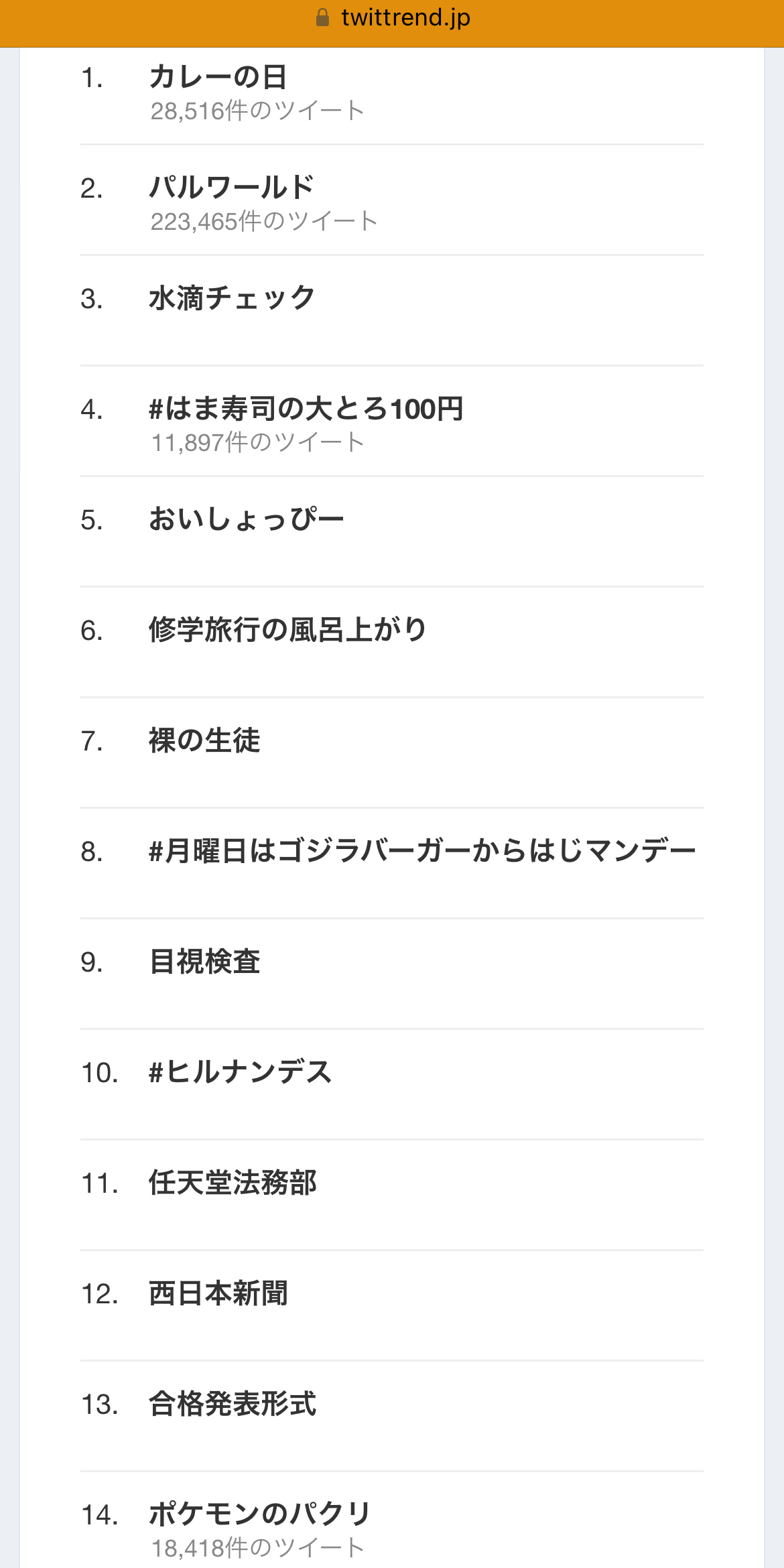 3時間前のトレンド