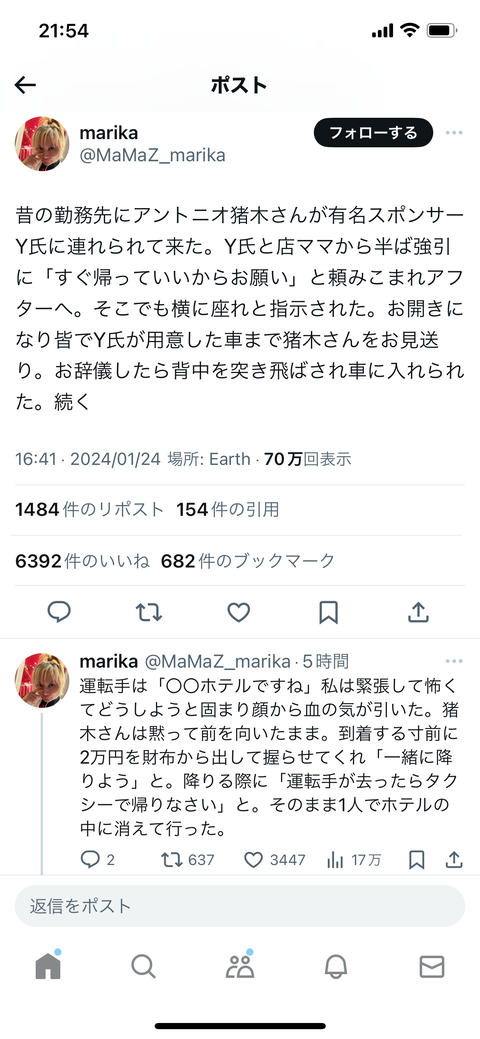 アントニオ猪木、アテンドされた女性を無事救出 Twitter Facebook はてブ LINE コピー 2024.01.26 スポンサーリンク 1:それでも動く名無し:2024/01/26(金) 00:08:40.70 ID:c8EP2JvAM 2:それでも動く名無し:2024/01/26(金) 00:10:08.51 ID:2uqlcb09a 実話ならかっこよすぎる 3:それでも動く名無し:2024/01/26(金) 00:13:03.90 ID:ai4/RVxQd 猪木ならやりそう 続きを読む