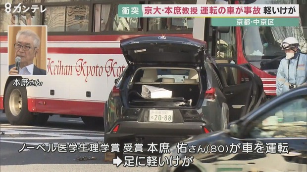 ガン研究でノーベル賞・京大の本庶佑特別教授が、同大学のスクールバスと正面衝突
