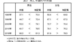 未婚者の男は30代で死ぬのが当たり前だったんだから凄い