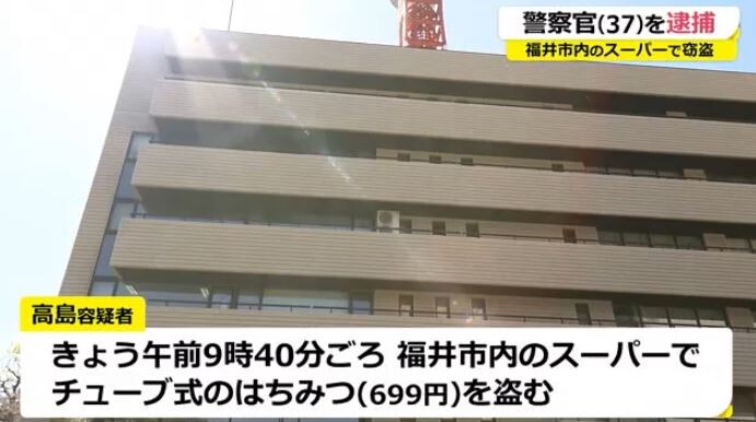 警察によりますと、高島容疑者は、29日午前9時40分ごろ、福井市内のスーパーでチューブ式のはちみつ699円を盗んだところを店員に発見され、駆け付けた警察官に現行犯逮捕されました。
