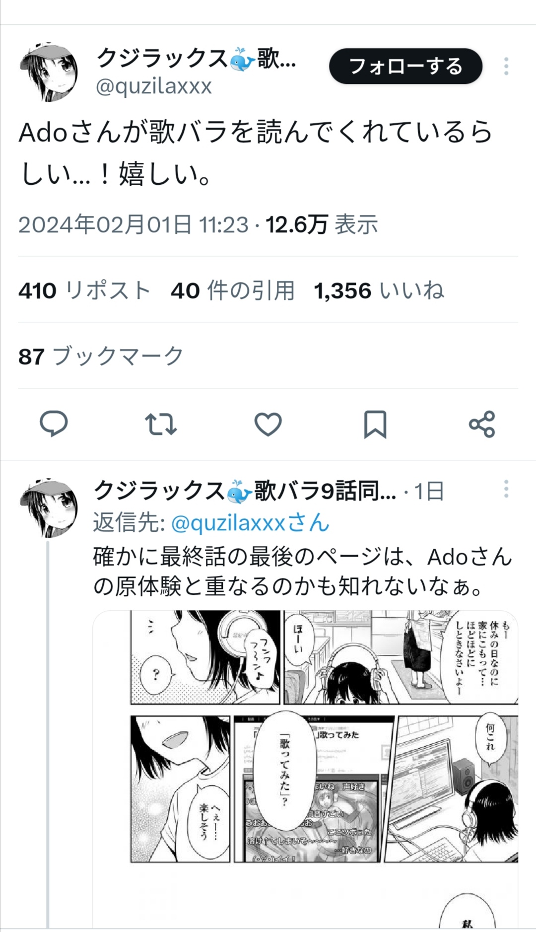 【衝撃】Adoちゃん、クジラックス「歌い手のバラッド」を読んでいた
