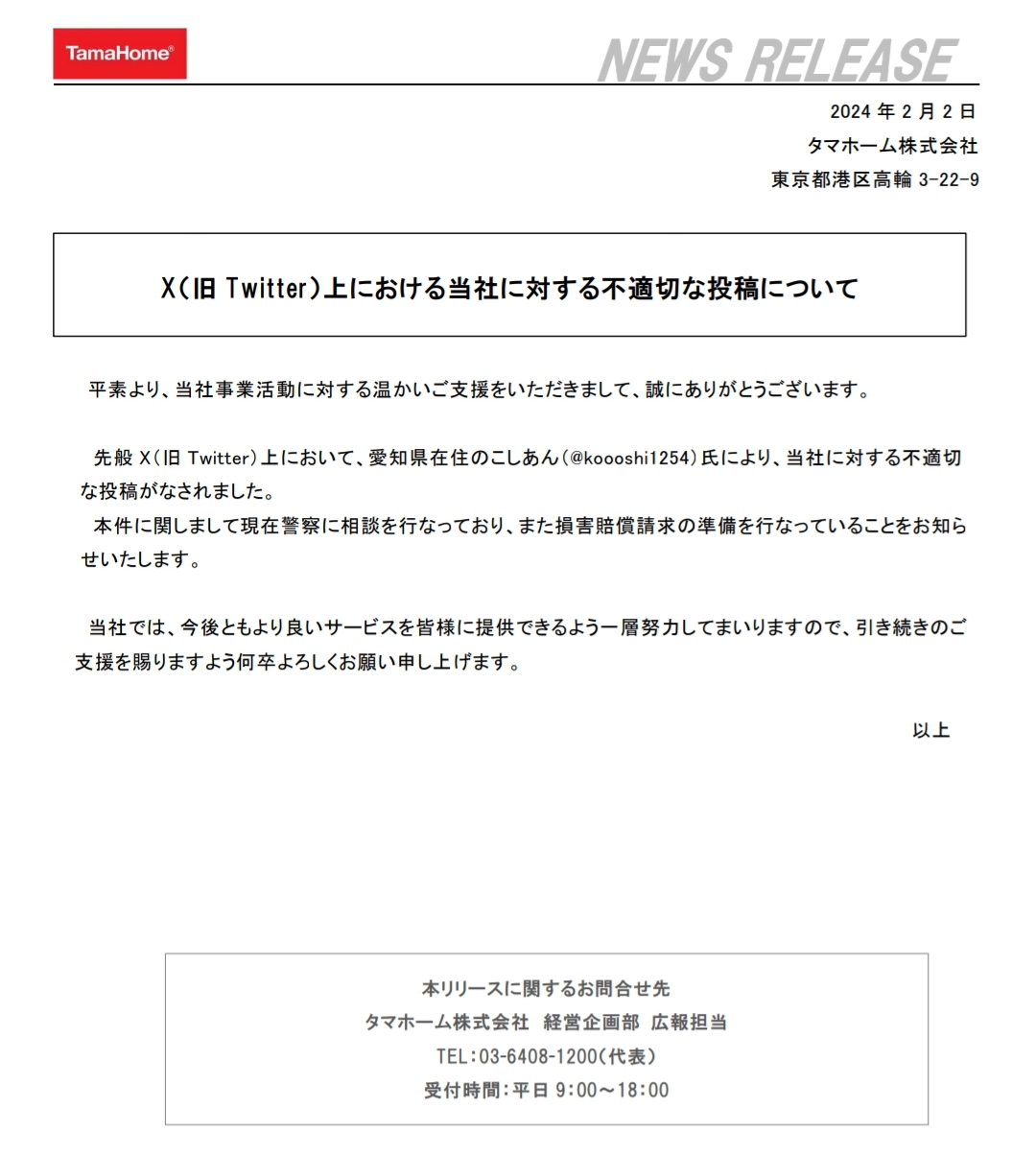 「損害賠償請求の準備をしている」とリリースを出される pic.twitter.com/GCozdNVFhS