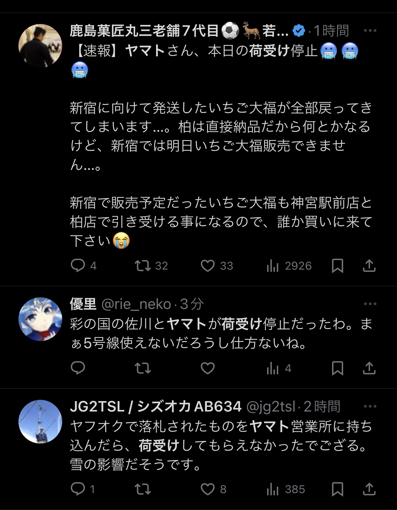 さっき見たヤマトのトラックチェーン巻いてたわ